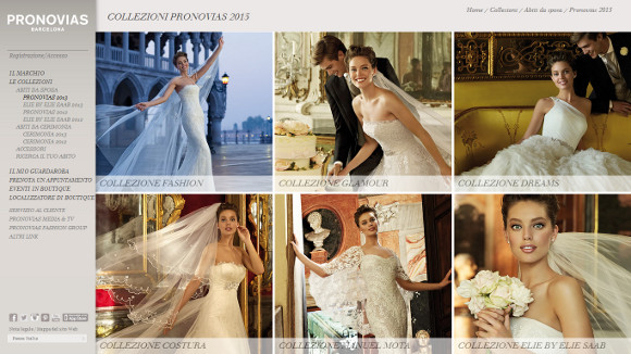 Pronovias propone per il 2013 diverse collezioni: fashion, glamour, dreams, costura, Collezione Manuel Mota, Collezione Elie by Elie Saab. Potrete ammirare le foto degli abiti delle suddette collezioni nel sito ufficiale: Abiti da sposa Pronovias 2013