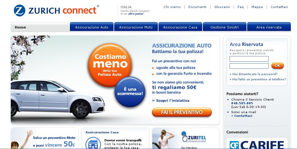 Dovete rinnovare l’assicurazione della vostra auto? Calcolate un preventivo con Zurich Connect, che promette di regalarvi un buono benzina di 50€ se il preventivo supera la vostra attuale polizza!