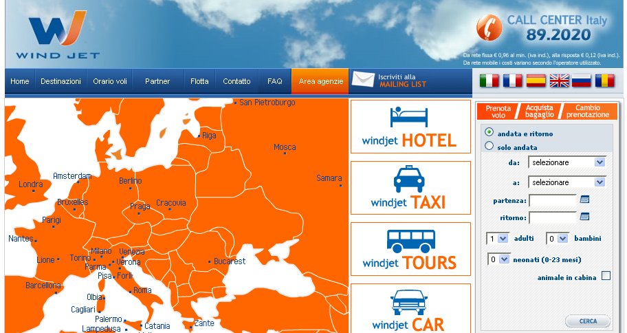 Il sito ufficiale della compagnia aerea low cost WindJet: www.volawindjet.it