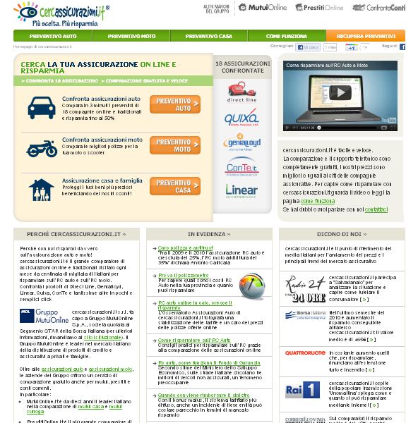 Cercassicurazioni.it è un interessante sito che consente di confrontare in pochi minuti i preventivi di molte compagnie assicurative, trovando così la polizza più conveniente per la vostra auto o la vostra moto