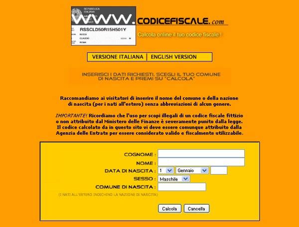 Esistono diversi siti internet che permettono di calcolare online il codice fiscale.