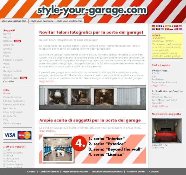 Style-Your-Garage.com produce e vende online degli originali teloni fotografici per le porte dei garage.