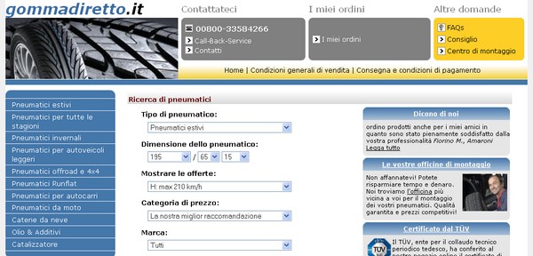 Uno dei siti più utilizzati per acquistare online gli pneumatici è Gomma Diretto