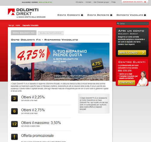 Ulteriori informazioni nel sito ufficiale: www.dolomitidirekt.it/it/deposito-vincolato/13-80.html