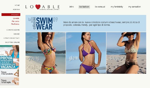 Lovable per l’estate 2009 propone tre linee di costumi da bagno: Young, Glam e Shape
