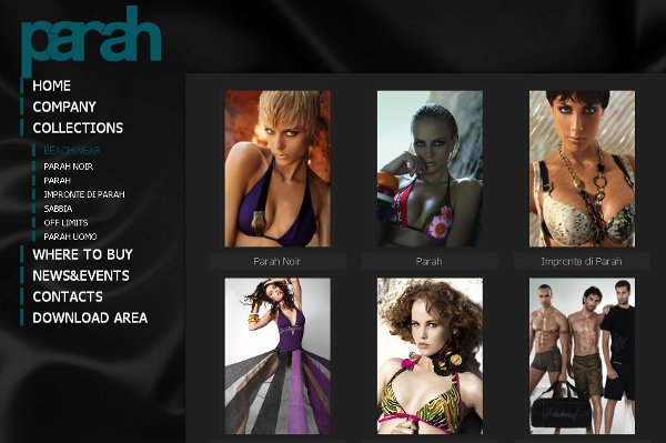 Le collezioni 2009 beachwear di Parah sono: Parah Noir, Parah, Impronte di Parah, Sabbia, Offlimits e Parah Uomo