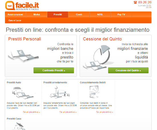 Quale prestito è più adatto alle vostre esigenze? Scopritelo con Facile.it, un servizio che permette di confrontare online diversi prestiti personali (ma anche mutui, assicurazioni, conti correnti etc…)