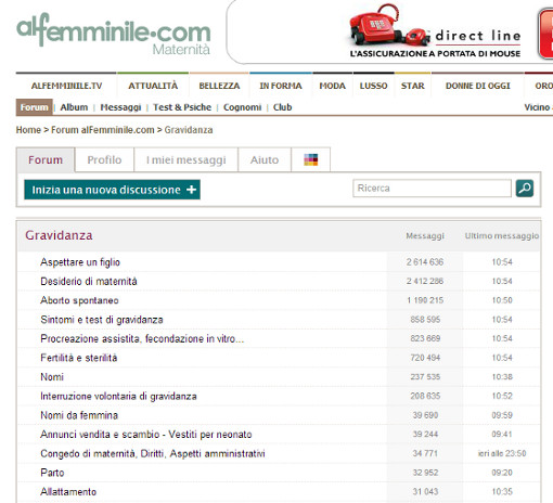 Al suo interno è presente un forum molto frequentato che presenta una sezione completamente dedicata alla gravidanza