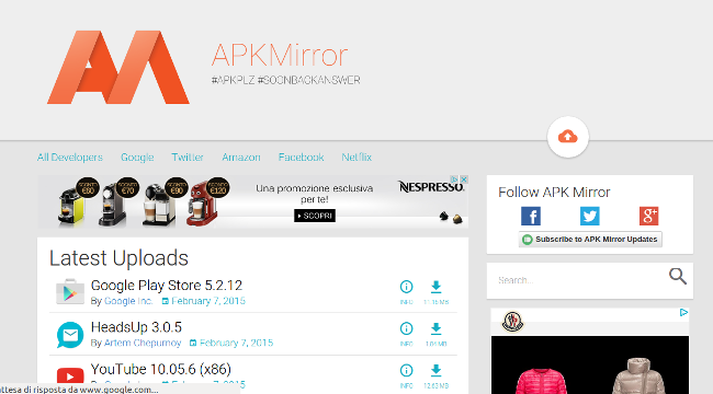 Ecco un interessante sito dove trovare le più importanti app Android (formato apk) sempre aggiornate e pronte per essere scaricate