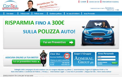 ConTe.it fa parte del Gruppo Admiral, compagnia diretta Leader nel Regno Unito nel mercato delle Assicurazioni Auto e Moto. Siamo in Italia dal 2008 con l’obiettivo di assicurare il risparmio ed un servizio di qualità ai nostri clienti, operando con i migliori partner assicurativi presenti sul mercato [fonte ConTe.it]