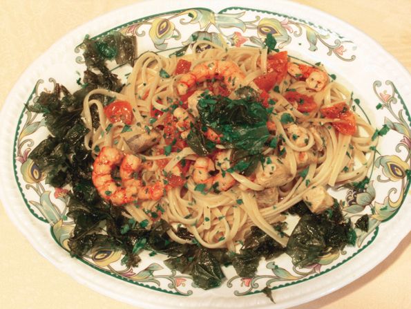 Ecco un piatto a base di pesce che potrete gustare al ristorante Le Macine a Lipari: fettuccine allo scorfano gamberoni e ciliegino