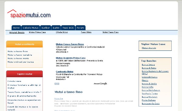 SpazioMutui.com è un sito ricco di informazioni sui mutui a tasso fisso e variabile e con tanti consigli per scegliere il mutuo più adatto alle vostre esigenze