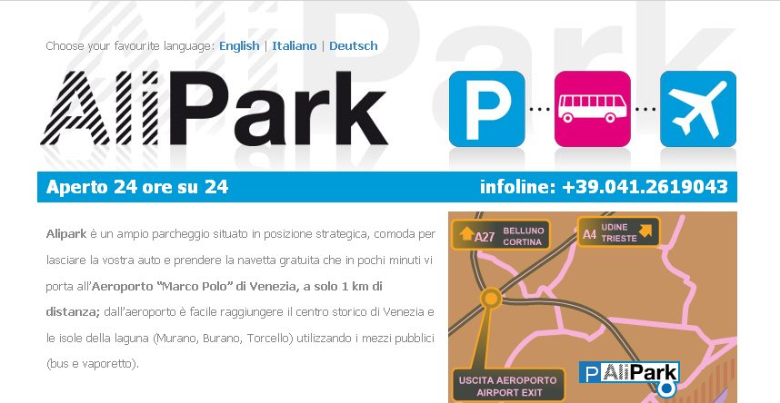 Il sito ufficiale del parcheggio Alipark di Venezia: www.alipark.it