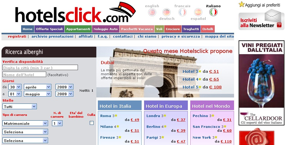 Oltre a poter prenotare hotel in Italia, Europa e nel mondo su Hotelsclick.com potrete trovare offerte speciali, appartamenti per le vacanze, noleggio di auto, pacchetti vacanza, voli, crociere, traghetti, ostelli e tanto altro per le vostre vacanze