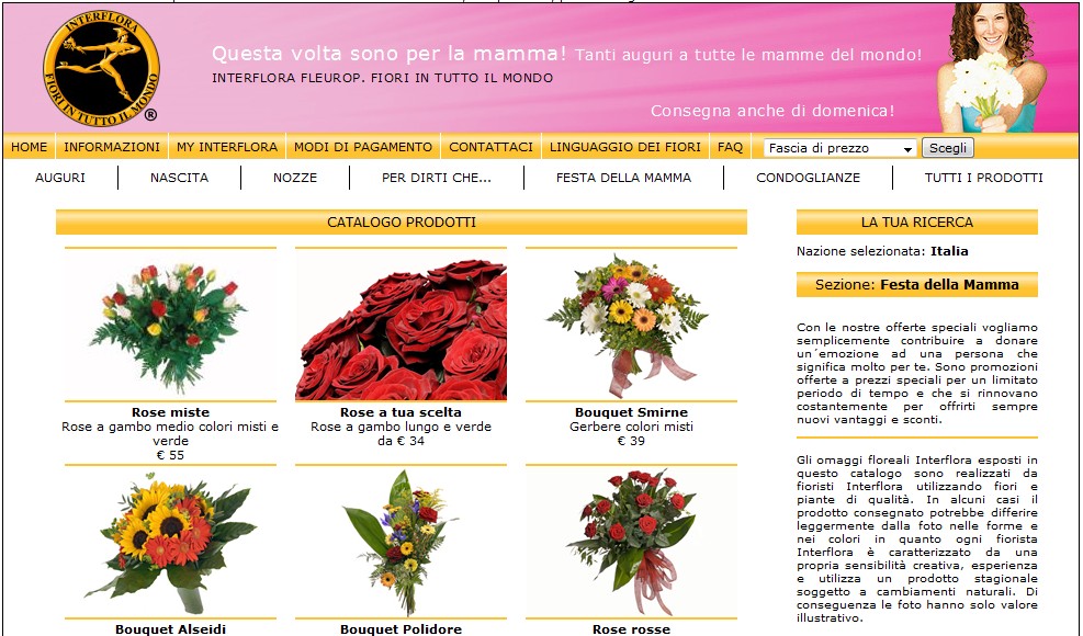 Interflora vi permette di inviare un bel mazzo di fiori, una pianta o una composizione floreale alla vostra mamma anche se vi trovate dall’altra parte del mondo.