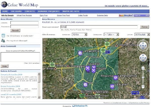Un altro sito molto utile per i celiaci è Celiac World Map, un portale che, attraverso l’interfaccia di Google Earth, permette di ricercare in tutto il mondo qualsiasi tipologia di locale (bar, ristorante, pizzeria, hotel etc.) con cucina senza glutine