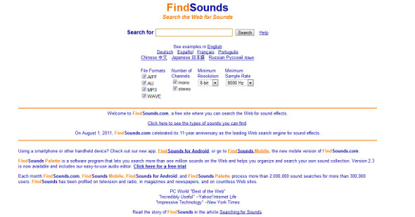 FindSounds.com è un motore di ricerca molto particolare… Permette di trovare e scaricare gratuitamente suoni di tutti i tipi