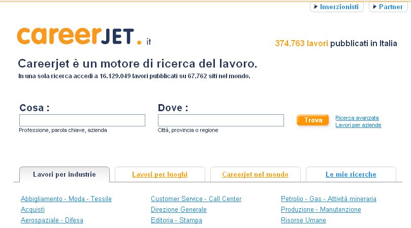 Careerjet è un particolare motore di ricerca per il lavoro che permette di trovare l’occupazione più adatta alle proprie esigenze tra oltre 16 milioni di offerte in Italia e nel mondo.