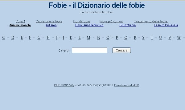 E’ un sito con tutte le fobie in ordine alfabetico