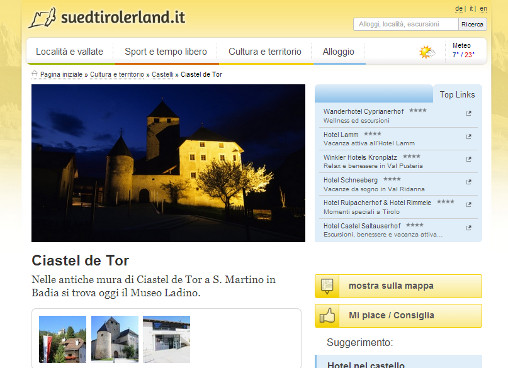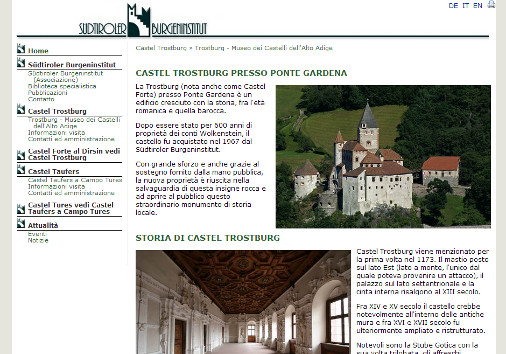 Tutti i castelli dell’Alto Adige – Sudtirol 13 Maggio 2013 di admin Gli affascinanti castelli dell’Alto Adige Tutti i castelli dell’Alto Adige Castel Tirolo Castel Tirolo Castello di Tures Castel Greifenstein Castel Badia Castel Badia Castel Roncolo Castel Monteleone Castel Tor Castel Tor Castel Foresta Castel Wolfsthurn Castel del Gatto Castel Trauttmansdorff Castel Fragsburg Castel Fragsburg (castel Verruca) Castel Rubein Castel San Zeno Castel Tasso Castel Boymont Castelfeder Castel Trostburg Castel Trostburg Castel Giovo
