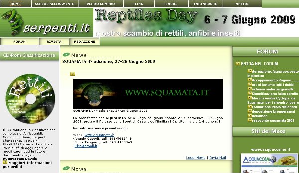 Nel portale troverete le schede di diversi serpenti, una sezione con le informazioni sulle mostre e le manifestazioni dedicate ai rettili e un ricco forum dove condividere le proprie esperienze e chiedere consigli agli esperti sui serpenti velenosi e non, sugli altri rettili e sugli anfibi